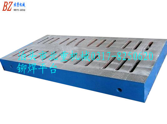 鉚焊平板采用HT200-300高品質(zhì)灰鑄鐵鑄件。對于平臺的特殊要求,可使用ZG200-400鑄造。