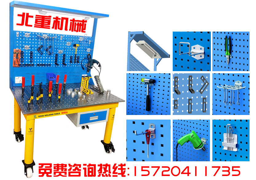 相對傳統焊接工裝而言,工裝只能針對一個工件或一個工序進行使用,柔性焊接工裝的通用性就顯得非常強大。三維柔性焊接工作臺的五個工作面可以根據需要任意擴展延伸,在工作臺面范圍內的三維尺寸可以任意方便的調整定位裝夾;附件的標準孔位與可調槽孔的靈活組合,使得工件的X、Y、Z坐標值得到任意調整;通過平臺與平臺、平臺與附件、附件與附件這些模塊化系統在安裝、調整和裝夾工件中完美的體現了它通用柔性功能。